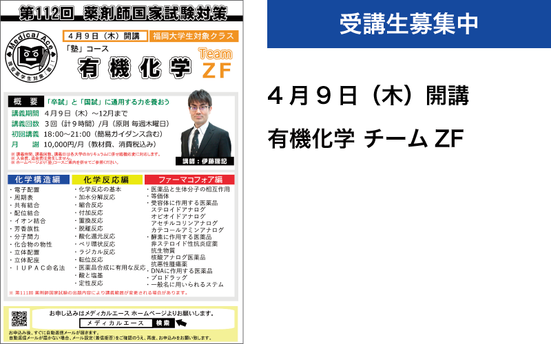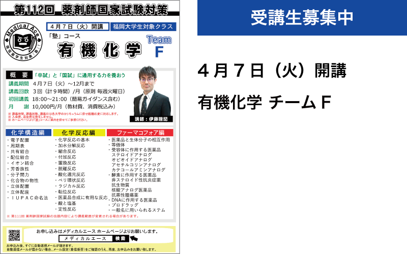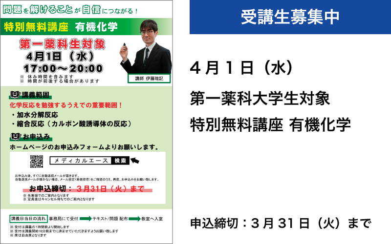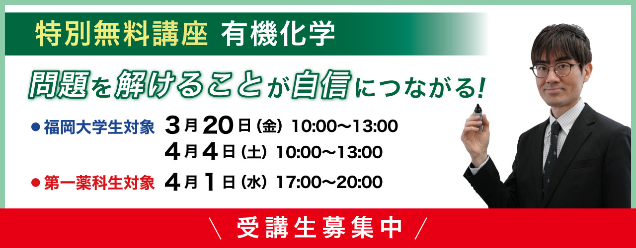 ・3月20日(金) 福岡大学生対象 特別無料講座 有機化学
