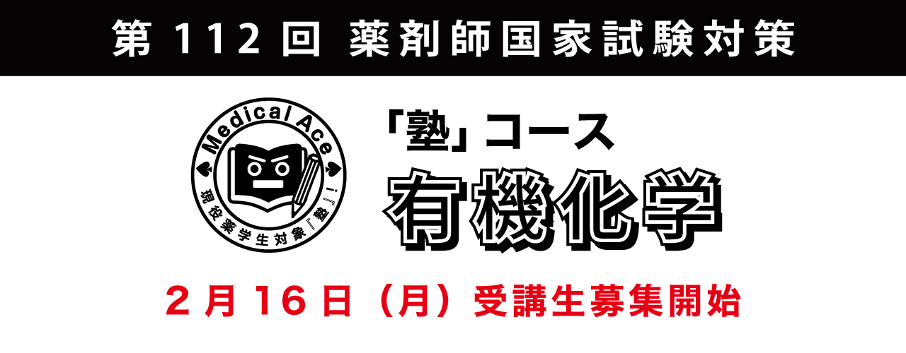 第112回 薬剤師国家試験対策「塾」コース 有機化学は2月16日より受講生募集開始予定です。